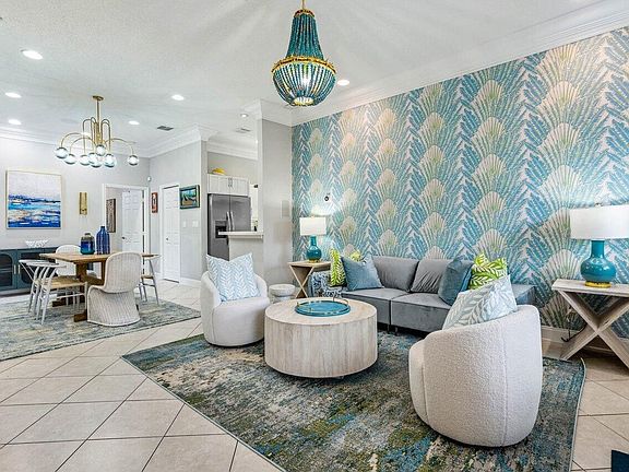 Inside, you'll find designer wall coverings in every room, paired with brand-new high-end furnishings that create a fresh and luxurious atmosphere. The bright split-bedroom layout provides privacy, while impact windows, a one-car garage, and in-unit laundry add ease to daily living.