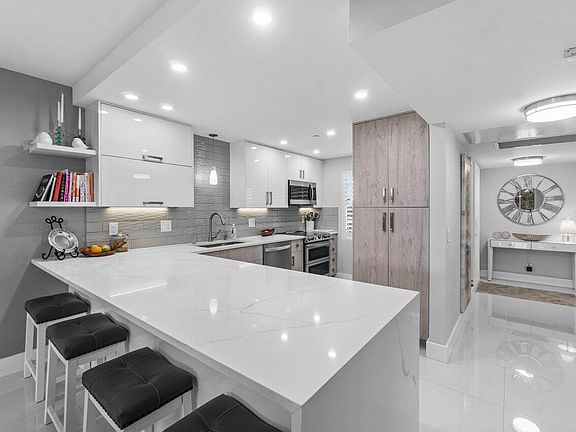 Luxury 3-Bed, 2-Bath CORNER UNIT, with amazing VIEWS. Stunning redesigned unit w/ 3 beds, 2 baths, and a wealth of HIGH-END FINISHES, this home is perfect for those who appreciate both style and functionality. Open-concept GOURMET KITCHEN is a chef's paradise, featuring SOFT CLOSE cabinetry, TOP TIER STAINLESS APPLIANCES, and an expansive WATERFALL QUARTZ ISLAND - Hands free faucet & under cabinet lighting. Dining & Living room hosts X Large built in CREDENZA. Retreat to primary suite, complete with CUSTOM REINFORCED CLOSET SPACE and stunning PLANTATION shutters. The serene EN SUITE BATHROOM has been meticulously remodeled for a spa-like experience. Generously sized guest bedroom welcomes visitors with comfort, accompanied by a stylishly updated bathroom. More... Third bedroom has been thoughtfully reimagined as a flexible den - the perfect space for work, play, or relaxation, incl. remote shade. Every inch of this home exudes quality, with large tile flooring throughout, including the bedrooms. Step outside onto your tiled WRAPAROUND PATIO, perfect for morning coffee or evening cocktails with GOLF, GARDEN & LAKE VIEWS.