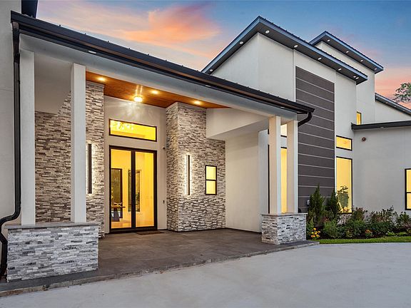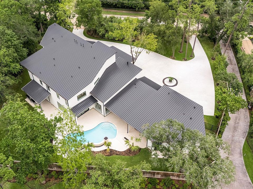 Pulling into the expansive circular drive, you are immediately met with a sense of modern architectural sophistication. The contemporary exterior is complemented by a sleek standing seam metal roof & striking iron & glass double entry door. Inside, a grand foyer w/soaring 13' ceilings & floor-to-ceiling windows creates a dramatic introduction, framing views of the sparkling pool adorned w/3 cascading waterfalls flanked by dual fire pit features. Designed for effortless entertaining, the expansive open-concept layout includes formal living & dining areas, sitting room & family room, all flowing seamlessly into the heart of the home: the stunning double island kitchen w/a ton of bells & whistles. Three ensuite bedrooms are thoughtfully located on the 1st floor, including the luxurious primary retreat, complete w/a spectacular bathroom & 2 huge custom closets. Upstairs, you'll find 3 additional ensuite bedrooms, custom media room, a fun game room & home office/fitness room.