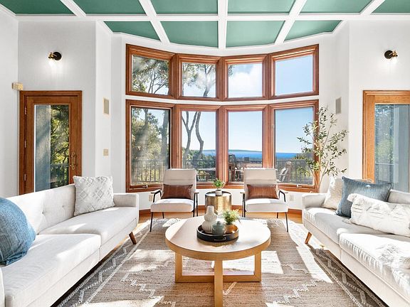 Designed by renowned Thacher & Thompson Architects, this custom home harmonizes with its surroundings, showcasing breathtaking ocean views from nearly every room. The private road, gated entry, and surrounding oak and redwood trees create a private, serene retreat with almost daily sightings of wildlife. Despite feeling away from it all, the home is just 3 minutes from Aptos Village and only 6 minutes from the beach, offering easy access to restaurants, shopping and the coast. The home itself feels warm and inviting, though refined at the same time. Spacious rooms, high quality materials, and expansive windows are found throughout. The well thought out floorplan features a library, family room, two decks, and two ensuite bedrooms on the main level. Upstairs the almost 900 sq ft primary suite is a true haven, complete a private enclosed sunroom, luxurious bathroom with dual closets, an oversized tub and shower, all highlighting the ocean view. Additional amenities include a finished 3 car garage, ample guest parking and a generator. Cherished by only two families since its construction, this remarkable home is ready to become your sanctuary. Seller financing possible.