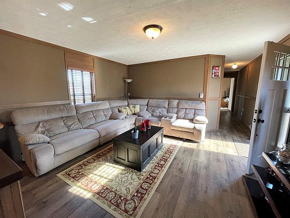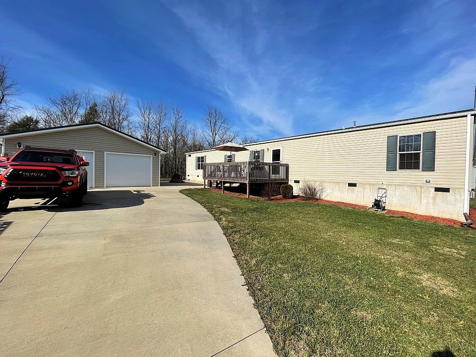 3/2 – 1216 sq ft - 2015 Single-wide. With a 24x28 insulated detached 2-car garage, Large shed, side patio with firepit on concrete, outstanding, majestic mountain views on 1.19 acres. Driveway is gravel and concrete. Enter in off the front deck to the open floor plan of the living room, Kitchen and eating area with Barn wood looking vinyl flooring. Kitchen comes equipped with Refrigerator, smooth top range and dishwasher. Wood looking pvc blinds on all windows. All Bedrooms have carpeting, and baths have the same Barn wood looking vinyl. Just past the kitchen is another door that leads to a deck, where you also enjoy those views. Continue down this short hall to the laundry room on the left and the master Bedroom and Bath at the end of that hallway. Master bedroom is large with a .... walk-in closet and large windows. Master bathroom has a tub/shower combo and single vanity. Back through the living room down the hall are 2 bedrooms and guest bathroom. Backyard is deceiving because, you will think it ends at the forest line, but it does not. It goes into the woods. This property is well worth a look. It has been well taken care of.