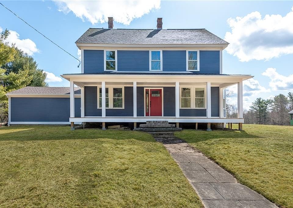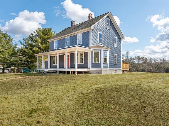 Don't pass by this remarkably restored 1870 Colonial set on 2+ acres on beautiful picturesque Round Top Rd in Harrisville that offers 4 bedrooms and 2 1/2 baths, amazing natural light drenches the gorgeous hand nailed pine floors that gleam, generous ceiling height, a recently redesigned Master Suite w/walk-in has rustic sliding barn doors that enter into a bright and private bathroom, a fully finished open walk-up 3rd floor attic with hardwood flooring and eaves storage - trimmed with custom carriage-styled doors, an ample 2 car garage with new automatic doors, upgraded electric, convenient back entry hall, 1st floor laundry w/half bath, a generous new deck to overlook the fields behind the home, too! Both the durable Hardie Plank siding and new Farmer's porch are also great additional add-ons to this quintessential New England charmer! Come see!!