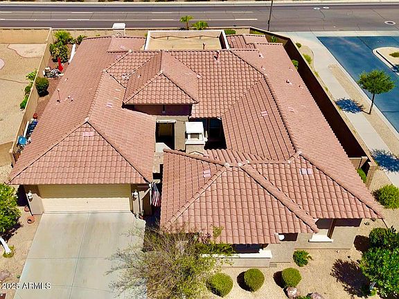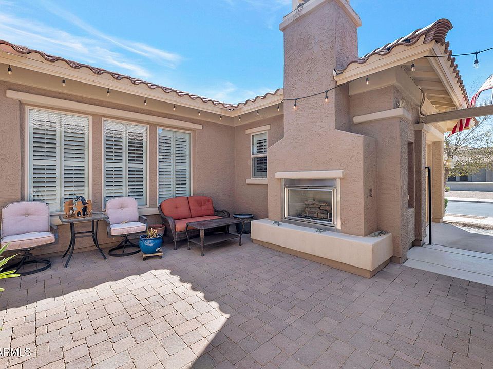Welcome to your Goodyear Retreat! Step inside this beautifully upgraded home be wowed from the very first moment. Enter through the private courtyard w/ it's cozy gas fireplace, a perfect spot for evening gatherings. At the center is the chef's kitchen, designed to impress w/ granite counters, an oversized island, built-in oven & microwave, electric cooktop plenty of cabinet space. The open family room with its gas fireplace offers the perfect blend of comfort & style. The oversized primary suite is complete w/ a jetted tub & separate shower. With 3 bedroom + a spacious office/den, this home provides flexibility for any lifestyle. Step outside to the expansive covered patio, crystal clear pool & lush landscaping. Why wait on a new build with no upgrades, when this home has it all!!