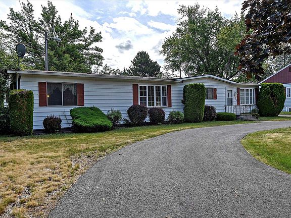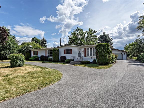 Conveniently located manufactured home on over half an acre with circle drive access. Two bedrooms and two baths, all appliances stay, (even washer/dryer) kitchen has double ovens, 1536 square feet, forced air gas furnace with central AC and wood burning stove. Primary bath has shower, tub and double sinks. 33x28' shop with 2 work shop area inside, paved RV parking along side shop, large gate access into back yard and covered storage area off the back of the shop. This property is ready and waiting for you to call it home...so many possibilities for this oversized lot so close into the Spokane Valley.