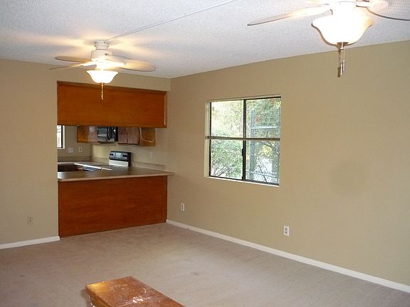 Secluded corner unit condo in a hilltop community!. Large kitchen with dining area, eat at bar, neutral tile flooring, ceiling fan, lots of cabinets, pantry, appliances include refrigerator, dishwasher, smooth top electric stove/oven and built-in microwave, access to spacious patio/yard from dining area. Large living room with 2 ceiling fans, master bedroom has large closet with 2 sets of mirrored closet doors, ceiling fan, master bath with tub/shower combo. Roomy hall bath with shower, 2nd bedroom also has large closet with 2 sets of mirrored closet doors and ceiling fan. Large storage/linen cabinet in hallway. 2 assigned parking spaces 1 covered with additional storage unit. Will accept 1 small pet under 20 lbs. only (per HOA restrictions).