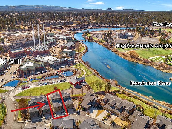 Nestled in the heart of the Old Mill District! Enjoy the Deschutes River trail, restaurants, shopping, concerts, and nature right out of your front door in this Otter Run townhome. Soak in the Bend lifestyle on large deck with mountain, peek-a-boo river, and old mill views. Well-appointed with Acacia wood floors, stone gas fireplace, wood wrapped windows, and elevator to each level. Kitchen has slab granite countertops, and stainless-steel appliances. Large 2 car garage has an additional, enclosed storage room for all your outdoor activity gear. Welcoming entry on the 1st level with large space to remove coats and shoes, leads to a junior suite, laundry room, and doors to the back patio. You will find the large great room, with beautiful kitchen, warm living room, large bedroom and full bathroom on the 2nd floor. The top floor holds a large primary suite with walk in closet, gorgeous bathroom, and private deck to enjoy the views. Convenient location while living the Bend lifestyle.