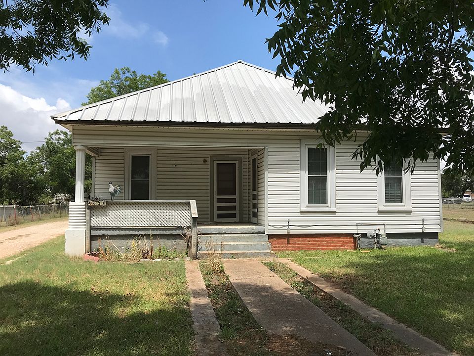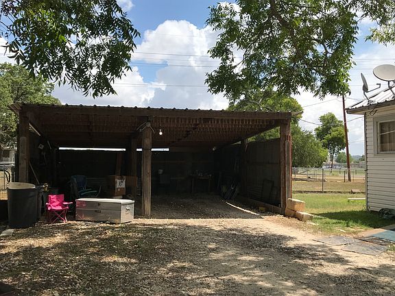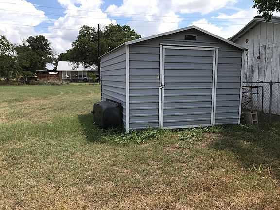 Bungalow with large front porch on a large lot. This two bedroom, two bath sits just on the edge of town and greets you with a large front porch. There are tall ceilings throughout the house, lots of windows, and large trim. The living room with fireplace is open to a large dining room. There is an extra eating area off the kitchen. The master bedroom has two closets and a full bath. Out back you will find a detached carport, workshop with electric, storage house, and barn/shed. Several mature pecan trees make a great shade and there is plenty of room for a nice garden.