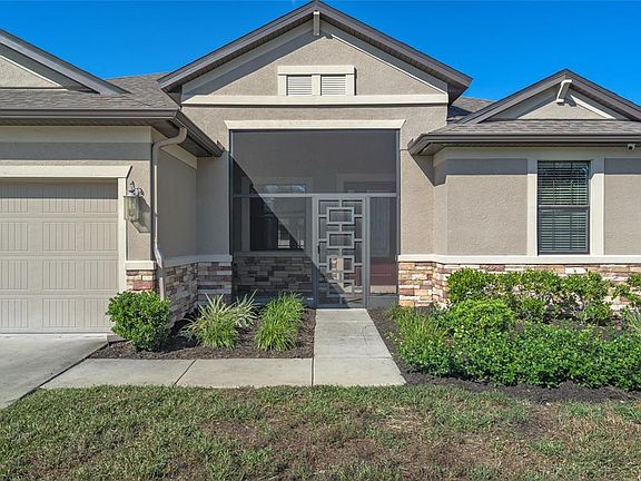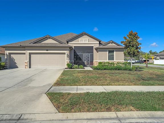 Location, Location, Location! This meticulously maintained 4 bedroom plus den home offers it all. Home is absolutely stunning inside and out. Situated on an oversized corner lot. Features an open floor plan with upgrades galore. Be prepared to experience the 'WOW' factor from the moment you walk in the door. Kitchen has birch cabinets with 42' upper cabinets, granite counters and a huge pantry. Master bath is equipped with his/her sinks, cultured marble counters, garden tub, tiled shower and an enormous walk in closet. Ceramic tile in all the main rooms with carpeting in the guest bedrooms and LVP in the master bedroom. Crown molding throughout home, trey ceilings, security system, epoxy flooring in garage and double pane tinted windows throughout. French doors lead you out to a large enclosed lanai that overlooks your fenced in yard. Located within minutes of the Suncoast Parkway/Veterans Expressway. Making for an easy commute. Anderson Snow Park and the Suncoast trail are also minutes away giving you endless opportunities to stay active, running, walking, cycling etc. Don't hesitate this home won't last long.