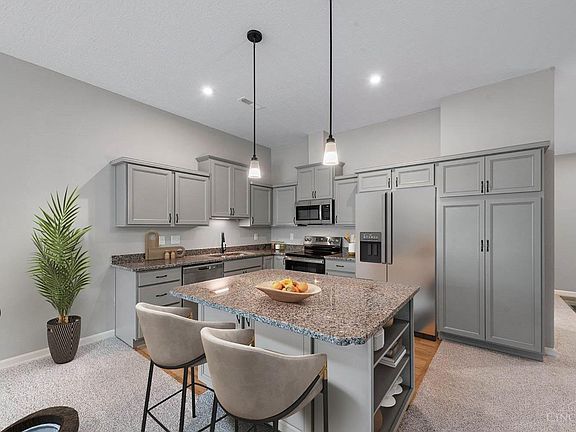 Stylish new Wexner plan by Fischer Homes in beautiful Twelve Oaks featuring Penthouse style living with an open concept design featuring an island kitchen with stainless steel appliances, upgraded multi-height cabinetry with soft close hinges, and granite counters all looking into the spacious family room offering walk out access to the back deck. Central dining room. The homeowners retreat is in the back of this home and has an en suite with a walk-in shower and walk-in closet. Second bedroom and full bathroom.