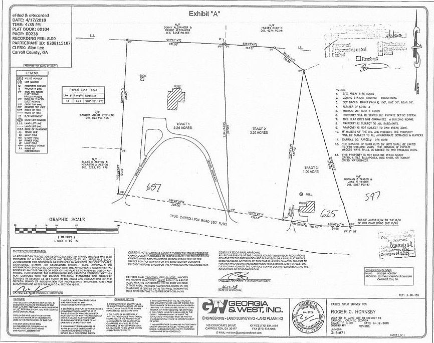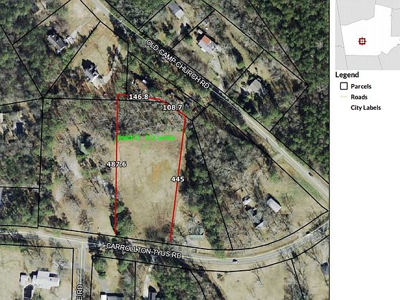 2.2 gently rolling acres. Minutes from University of West Georgia and shopping. Currently zoned commercial, yet would make a wonderful home site. 158' of frontage on Tyus Carrollton Road. See Plat for accurate dimensions and calls.