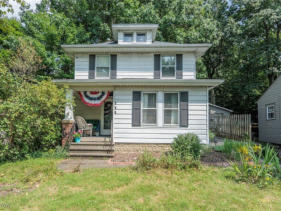 This Roaring 20's Colonial, situated on a city lot that's nearly 1/2 acre, has wonderful charm--from its knotty pine-accented kitchen to its front sitting room to its deep, wooded back yard & relaxing front porch! Situated near Kent State University yet just far enough away for peaceful enjoyment, this 4 Bedroom home boasts a fully-fenced back yard area, two fireplaces, 2 full baths, and a First Floor Bedroom with amazing built-ins! Original Wood Floors throughout including under upstairs carpets. With three additional bedrooms on the second floor, plus a walk-up attic space and full basement, there's plenty of room! Speaking of room, lots of storage nooks/closets, especially considering a 104-year-old home! The kitchen with knotty pine cabinets has an eat-in area and boasts stainless appliances, all replaced 2022-24. Talk about a view... the eat-in area with large window provides a stunning view into the parklike back yard frequented by deer and other wildlife. Roofs: over kitchen was pitched in 2006 & reshingled; Main house roof: 2022! Soil stack replaced 2018/19. Both baths replumbed 2018-19 w/ copper and PVC. Electric service line from street to house, new meter & main breakers all replaced, 2019. New front door, 2003. The attic space can be finished to your liking and could provide additional bedroom, office or recreation space. Put your touch on the second floor bath, complete with original clawfoot tub! Bonus Room "bump out" off of living room could be anything you want it to be-- sunroom, guest space, sitting room, office... even bedroom if french doors are added! Full basement complete with washer/dryer. Don't miss out on your chance to purchase this property and put your stamp on it to realize immediate equity! Buyer 1-year Home Warranty included for peace of mind!