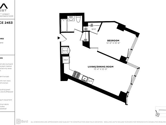 FARE Act Disclosure. This listing is intended to be used by prospective renters and may not be republished without the prior written consent of The Durst Organization. Absent an express written agreement or acknowledgment to the contrary, The Durst Organization and its affiliates (1) do not utilize the services of third-party brokers or agents in connection with the rental of residential apartments and (2) will not assume responsibility for any brokerage fees incurred by a prospective renter. The Durst Organization and its affiliates will not charge or collect fees from a prospective renter except for such fees as permitted by law and disclosed to the prospective renter.