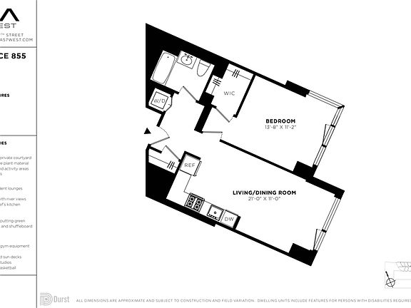 FARE Act Disclosure. This listing is intended to be used by prospective renters and may not be republished without the prior written consent of The Durst Organization. Absent an express written agreement or acknowledgment to the contrary, The Durst Organization and its affiliates (1) do not utilize the services of third-party brokers or agents in connection with the rental of residential apartments and (2) will not assume responsibility for any brokerage fees incurred by a prospective renter. The Durst Organization and its affiliates will not charge or collect fees from a prospective renter except for such fees as permitted by law and disclosed to the prospective renter.