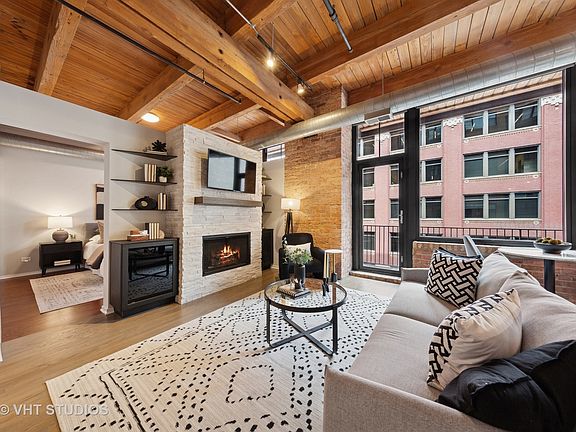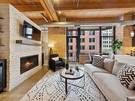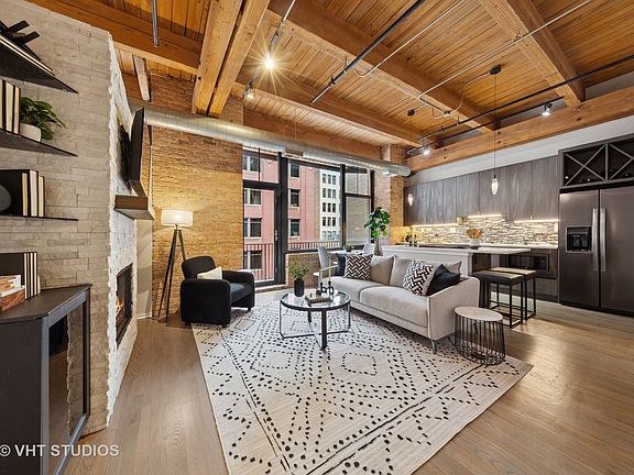 Discover the epitome of urban living in this stunning brick and timber 2 BR loft in the West Loop. Enjoy two balconies with unparalleled views of Jackson Blvd and the iconic Sears Tower. Step inside to expansive hardwood floors and a brand-new kitchen outfitted with sleek black stainless-steel appliances-a chef's dream. The elegant double vanity bathroom offers a spacious shower, while the in-unit washer/dryer adds convenience. The second bedroom is versatile; its ample size is perfect for guests AND a home office. Each closet has been custom-designed to maximize space, including a huge walk-in primary bedroom closet. Motorized shades in the living room and blackout motorized shades in the bedroom - luxury living at its best! The gas fireplace is centered in the stone tile surround, flanked by cabinets and glass shelving. Check out the first-floor fitness center and in-lobby access to the mini-market -truly convenient living! The neighborhood is rich in history and culture-you're near Lou Mitchell's and end of Route 66, vibrant Greektown, and the bustling Fulton Market/Randolph restaurant bonanza. This is a pet-friendly building and garage parking is available for purchase (30K). Ideal for professionals who work in the loop or reverse commuters who can jump on the highways nearby, with Millennium Park and the lakefront a short walk to the east.