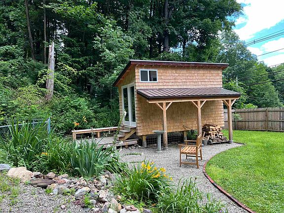 Come and be enchanted by this unique property, complete with a tranquil cascading spring-fed brook Where the fireflies will delight you on a summer's eve. Located near to the farmers market, memorial park with ski hill, playground, and pool, this haven offers the perfect blend of convenience and nature. The yard is private with lush lawn, terraced vegetable garden, and perennial flower gardens that will provide a peaceful retreat, further enhanced by the cedar sauna with yoga or meditation room and a sweet little deck. The south-facing slope ensures warmth in winter, extending the growing season and allowing for winter gardening. Trails have been cleared through the back property providing a perfect escape from the daily stresses. Inside, refinished wood floors gleam in the sunlight, the eat-in kitchen is a cozy spot for gathering, while the extended living room allows for separate space on one end, with a small office and enclosed porch that would be a great spot for plants and a reading nook. Convenience with a bathroom on the first floor with an updated walk in shower, and a laundry room/pantry off the kitchen. Upstairs you'll find three bedrooms, a bathroom with a luxurious tub, an extra room just right for an exercise space. Embrace the health benefits of living amidst the abundance of forest, sun, and moving water in this idyllic setting! See attached list of many updates and upgrades, you will be surprised by all this property has to offer! Showing begin Sat the 29th