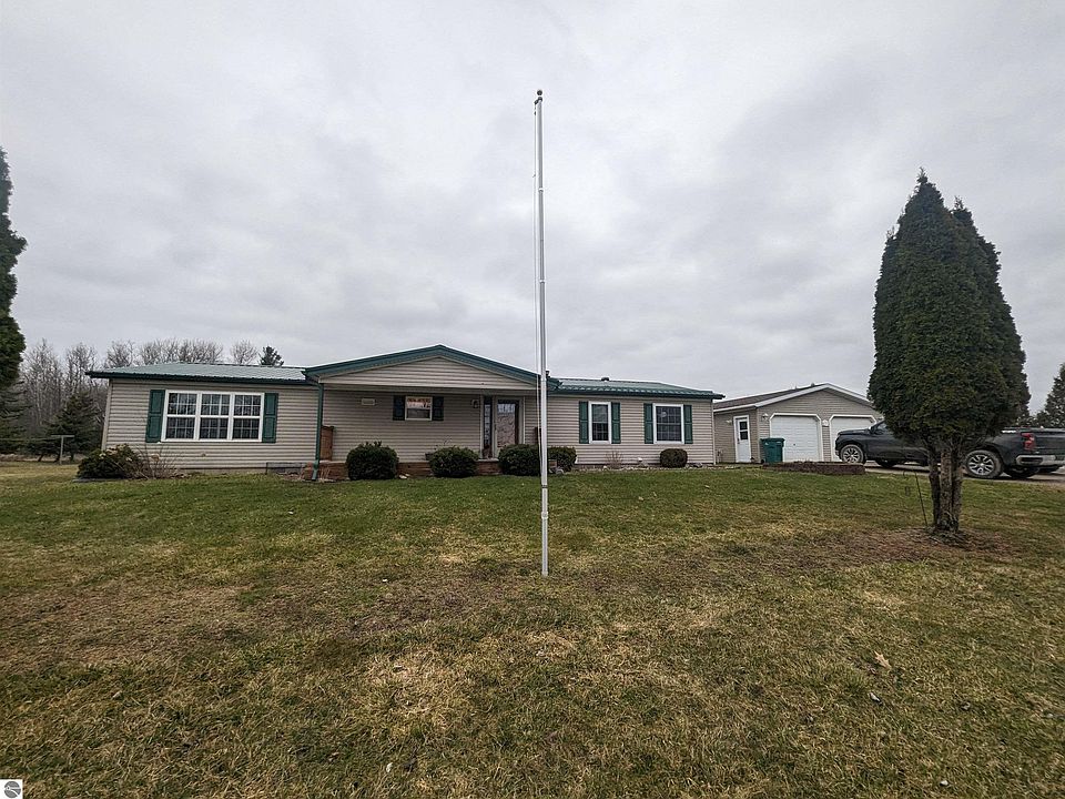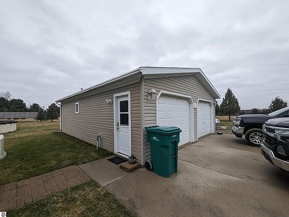 An immaculate property awaits with this listing! Over 7 acres that is at the end of the road for added privacy! This home has been very well kept and maintained. The home is a manufactured ranch with a welcoming covered front porch entrance into a foyer overlooking the living room and dining area. There are two bedrooms, including a primary bedroom w/ a large walk-in closet that has a second door leading into the spacious private bathroom w/ jet tub, separate shower, and double vanity! The cozy living room has an infrared fireplace that offers a comfortable ambiance and warmth when it's needed to take the chill off. There is plenty of cupboards and cabinets in the kitchen along with an island for added prep space. There is a large laundry area with a side door that leads out to the 24x32 heated and insulated detached garage! Outside there's a spacious back deck that leads to a pool deck along the above ground pool that is included with the pump and filter system. Other features include 2x6 construction , central air, Generac system, solar power backup system, new flooring and windows, new front door, metal roof, two storage sheds, and a water softener system. The property is a triangle shaped with lots of room to roam behind the home for recreational use! This stunning home is ready to go!