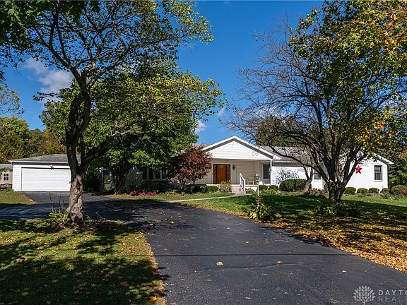 Welcome to one of the best ranches with a great floorplan plus acreage with 4 out-buildings! A wonderful 12X22 covered front porch is so inviting for entry into the formal living space or enter this home from a 6X20 breezeway that features a skylight. The breezeway is sandwiched in between a 2+ car garage & the home. The interior of this home features all hard surfaced flooring, Pella windows, French & solid wood 6 panel doors, zone (2) HVAC systems. A new (900+ sq. ft.) primary suite added in 2013 with access to an 8X21 deck! This addition features a spacious bedroom, 3 large walk-in closets with automatic lighting, ensuite bath w/Jacuzzi tub, double wide shower & double vanity. Main floor laundry was created when addition was built (laundry connections also in basement). Original primary bedroom suite is great for guests. There are 2 additional bedrooms on the main floor serviced by a hall bath. The formal living room features a gas fireplace. The Formal dining has access to a screened-in deck & the breakfast area of the kitchen has access to another open-air deck. All of these decks overlook a lush 3+ acres with fencing for children or pets & featuring 3 gates (1 for a large mower). The main floor family room has access to a half bath. Remodeled kitchen features a skylight, new cabinet facings, Corian counters, all updated appliances including freezer! The full bsmt boasts a large recreation room, craft &/or study that features a half bath, huge unfinished area great for storage & a 2nd utility/mechanical room. There are 2 water heaters & furnaces, 1 for the original floorplan & 1 for the addition. Also, a water softener & air purifying system. The 4 out-buildings consist of 2 sheds, 1 in front yard area & 1 in back, a 10X16 enclosed metal pole barn & 20X40 implement storage building with a canopy. A large portion of the acreage has woods. Great location! Only 10 minutes to I-675 or I-70. This home is not in the Village of Enon, located in Mad River Township.