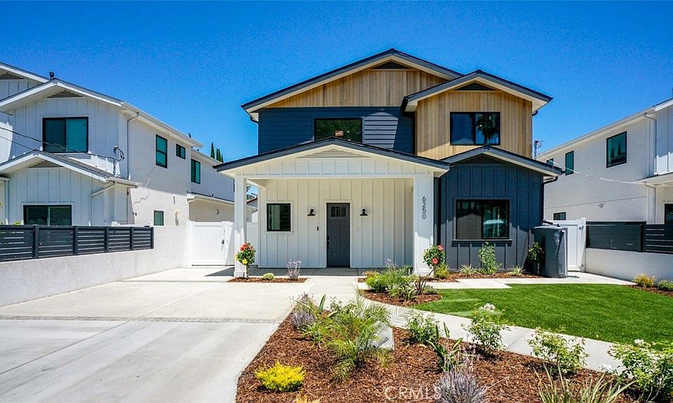 This absolutely stunning home is new construction that has just been completed! Built new from the ground up, this two story modern farmhouse is the perfect combination of prestige, beauty, and elegance! This 4 Bedroom 4 Bathroom house is simply gorgeous inside and out! Upon entering this house, you will be taken away by the extra tall ceilings, bedroom on the first floor with its own bathroom, half bathroom, and huge great room consisting of the Living Room with fireplace, dining room, and the kitchen. The kitchen is the highlight of this space with a huge island, high end appliances, and large walk-in pantry. The open stairs lead to a large open loft perfect for a home office, den, or sitting area. Once upstairs there are 2 more bedrooms, laundry room, large full bathroom, and the primary bedroom. This massive primary bedroom is an elegant space with a large walk-in closet, balcony for quiet time with a good book and cup of coffee, and the primary bathroom with walk-in shower and freestanding tub. The exterior is beautifully manicured with great curb appeal, and has a finished detached garage in the rear. This property is elegant, charming, and full of character and detail! The lot is almost 9,000 square feet, and consists of this beautiful home, detached garage, and LOTS of additional space for possibly a pool or maybe even an ADU! This is the third and final house in this development, and we saved the best for last! This house is nestled in between two other new house, and the new finished on this property really set it apart from the others! This property will not last long! Information contained within this listing is to be deemed reliable, but not guaranteed. Buyer to perform their own due diligence to satisfy themselves of all information contained in this listing. Some pictures have been enhanced by virtual staging.