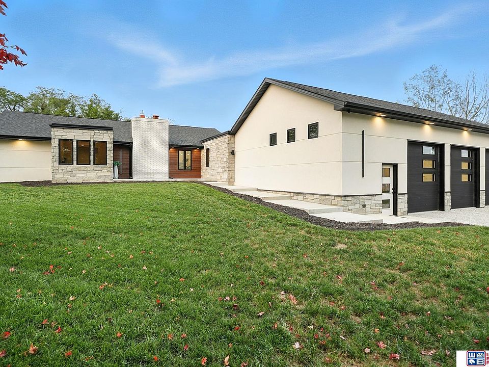 Experience modern luxury without limits on 2.51 acres in coveted East Lincoln. With no protective covenants or HOA restrictions, this property offers endless possibilities. Every inch of this stunning ranch has been thoughtfully reimagined and masterfully remodeled. Step through a custom steel door into an open, light-filled floor plan centered around a chef’s kitchen with JennAir appliances, custom island, and a dream walk-through pantry. The spa inspired primary suite features a soaking tub, walk-in shower, double vanity, and built in laundry. A floating staircase leads to the walkout basement with rec room, fireplace, two bedrooms, full bath, and hidden flex space which is perfect for a gym or office. Outside, enjoy a new lawn, sprinkler system, and two outbuildings ready for storage or future projects. Luxury, location, and limitless possibilities, this one has it all!