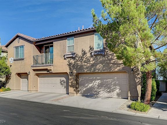 REDUCED! You will be glad you visited this THREE bedroom end-unit condo because you will want to call it home. This a rare find with an attached two car garage. The kitchen features granite countertops. There are tile floors throughout the spacious, open downstairs living area. There is a generous sized primary bedroom with a walk-in closet plus two additional bedrooms on the upper level. The laundry is located on this level for your convenience. Enjoy the private, low maintenance backyard as the weather cools off. Location, location, location is the name of the game with this Southwest home. The gated community is conveniently located near the 215 freeway, airport, shopping and the Las Vegas Strip.