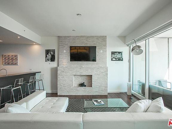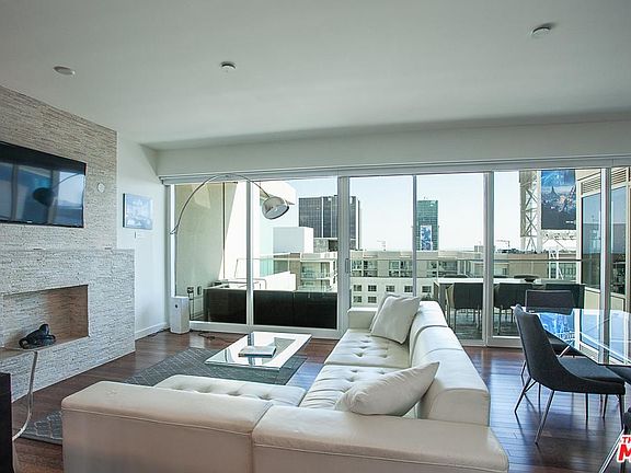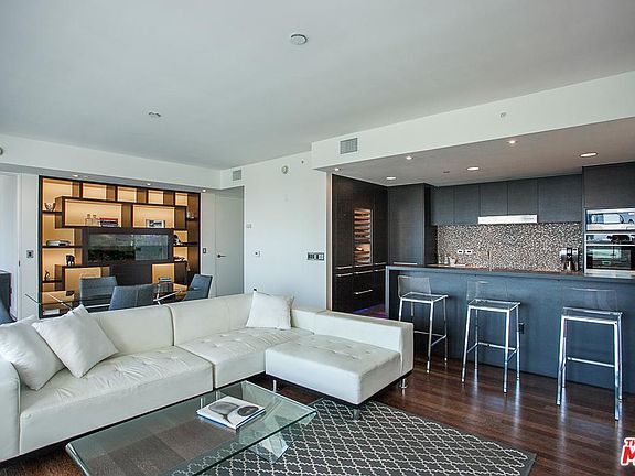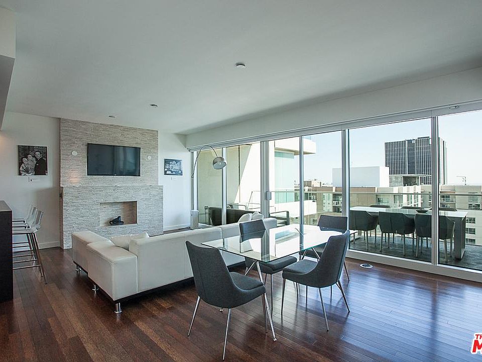 W Hollywood: Large one-bedroom south-facing penthouse. Huge views from terrace and master bedroom spanning from DTLA skyline to Century City and nighty sunsets. oversized, private 216sf terrace, glass-enclosed master bedroom. feature wall with fish tank display, large stone fireplace, upgraded master bath, laundry closet, open floor plan. Enjoy an oasis in the heart of Hollywood with all the amenities offered by this full service building including 24 hour concierge, valet, security, room service, roof top pool and event deck, dog park, fitness center, outdoor grills and private screening room. The only new-cosntruciton, full-service condo building in the heart of Hollywood