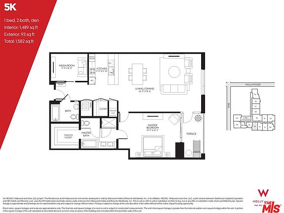 Extra Large 1+Den with 2 Full Baths at Just Shy of 1500 Sq Ft at The W Residences in Hollywood. High end building with concierge, 24 hour security, valet or self parking, rooftop garden with Olympic sized pool, fitness center and dog park. Also fire pits and BBQ areas and a screening room. Residents also have access to The W Hotel's room service and housekeeping. A luxury lifestyle with great walkability to shops, restaurants and entertainment. Trader Joe's and Equinox are neighbors as well. Too many places to list. Min 1 year lease and good credit and references are a must. Looking for an immediate move in. Shown by appointment only.