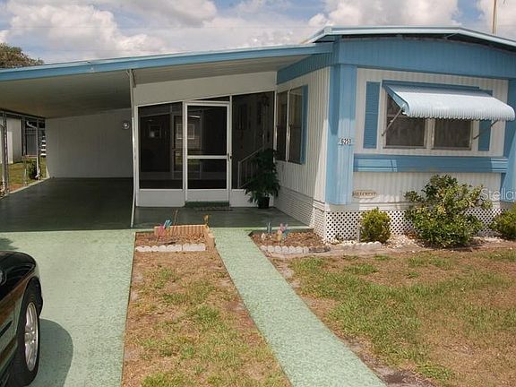 Extremely well maintained 2 bedroom, one bath mobile home in an active 55+ mobile home community. Large screened in Florida Room and a 2-car carport. Extra air conditioned storage & workshop. You own the land, so no lot fees! Low taxes. HOA is only $10 per month. Right in the heart of everything - shopping, restaurants, churches, parks, and entertainment.
