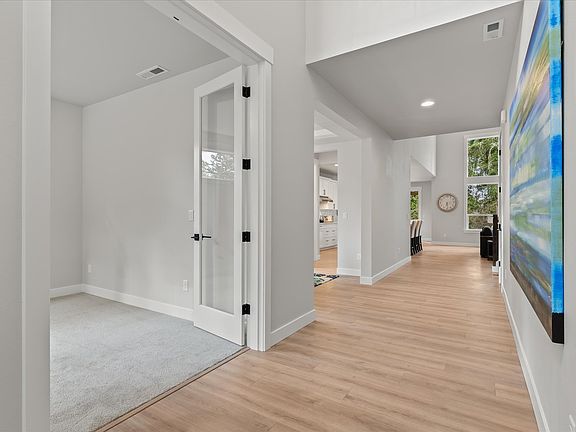 The Spruce is designed to be flexible and adaptable, with many options to customize the home to your needs. You can choose from a variety of options, including a tray ceiling in the dining room, barn doors in the primary bedroom connecting to the bathroom, multiple arrangements of gas fireplace in great room, double oven in kitchen, additional windows throughout the home, and a sink in laundry room.