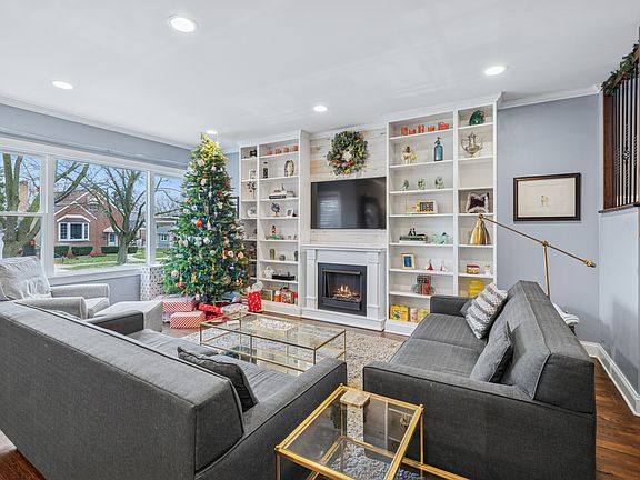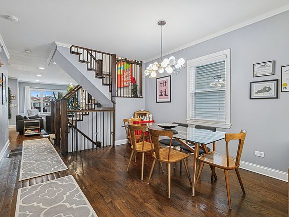 Beautifully updated 5 Bedroom 4 Bath single family home on lovely tree lined street. First level feutures hardwood floors throughout, living room, seperste dining area, kitchen with balcony, stainless steel appliances and quartz counters, a fourth bedroom and full bath. Second level features large primary bedroom suite with hardwood floors two walk in closets, balcony, primary bath with dual vanities, walk in shower and separate tub, two additional good sized bedrooms and full bath. Lower level has large family room, a fifth bedroom, full bath, utility room with full size washer and dryer and a large storage room. Fully fenced yard and two car garage complete this highly desireable home.