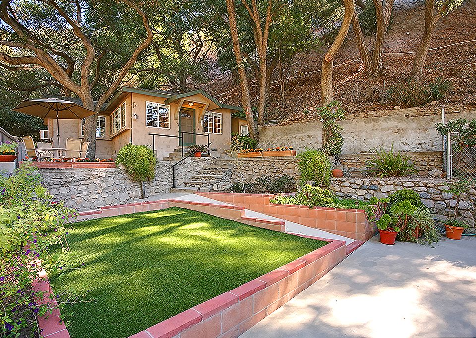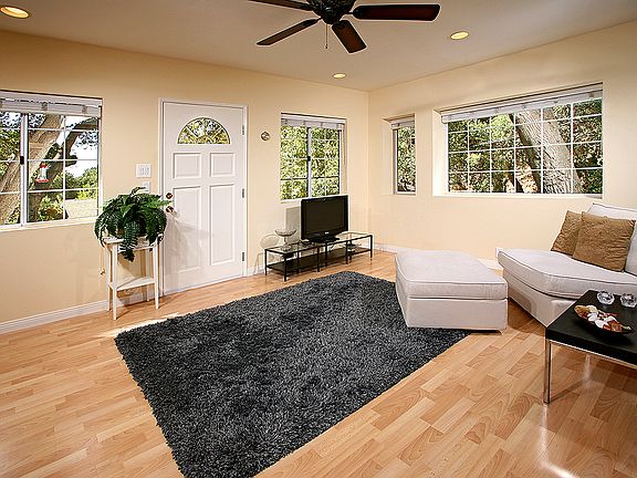 Nestled on top of a private knoll, this storybook cottage encompasses all the peace and privacy one could ever hope to enjoy. Driving to this remarkable home one feels the sense of leaving it all behind even though freeway access is just minutes away. Upon arriving pass through the locking gate, take a step onto the property and breathe it all in. The home is situated on five lots with plenty of useable yard space and hillside where one often sees deer. The home is neat and clean with a bright open living room featuring a fireplace, custom built-in book cases, blinds and new windows. Two spacious bedrooms with good closet space and lots of natural light streaming through the new windows make these rooms very comfortable. The exceptional master bedroom suite boasts a beautiful remodeled bathroom, a cedar lined walk-in closet, blinds and new windows. The eat-in kitchen has tile counter tops, great cabinet space, a garden window and laminate floors.