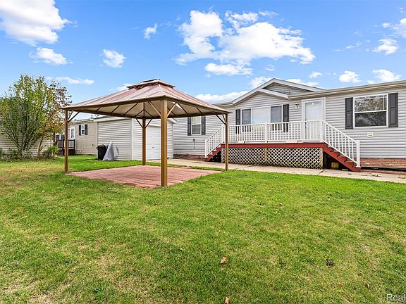 This beautiful 4-bedroom, 2-bathroom home is located in the Cider Mill Crossings community in Fenton. Perfectly positioned at the end of a quiet street, this property offers extra privacy and peaceful views backing up to natural wetlands. Step outside to enjoy a spacious deck, gazebo, and storage shed—plus a large driveway that easily fits two or more vehicles. Inside, you’ll find a bright living room and a spacious kitchen featuring a granite island, plenty of cabinet space, and all appliances included. A convenient first-floor laundry room adds extra ease to daily living. The home’s open layout includes a cozy family room with a wet bar and fireplace—perfect for entertaining or relaxing evenings. The primary suite is privately located at one end of the home, complete with a large closet and en-suite bathroom. Three additional bedrooms and a second full bath are located at the opposite end, along with the family room and a wide hallway that enhances the open feel. All fixtures have been updated, and each bedroom includes a ceiling fan for year-round comfort. The furnace was replaced in 2019 for added peace of mind. Cider Mill Crossings residents enjoy excellent amenities, including a 24/7 fitness center, in-ground pool, splash pad, playground, basketball courts, and a dog park. The clubhouse is also available for private events. Lot rent is $762 per month, and financing options are available.