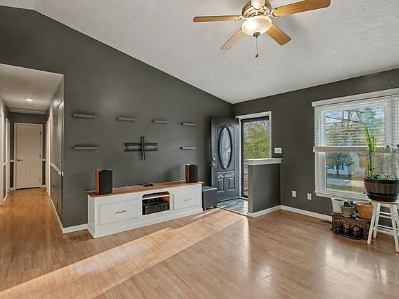 Inside, you'll find a large, light-filled living room, an open kitchen with bar stools, pantry, a mudroom with laundry, and vaulted ceilings that enhance the open feel. The main primary suite features two large closets with sliding barn doors. All four bedrooms are generously sized with great closet space.