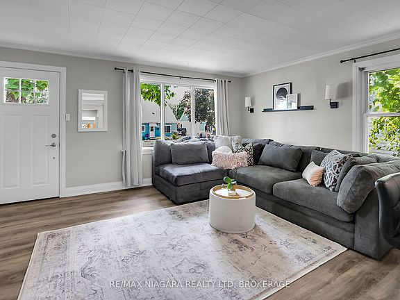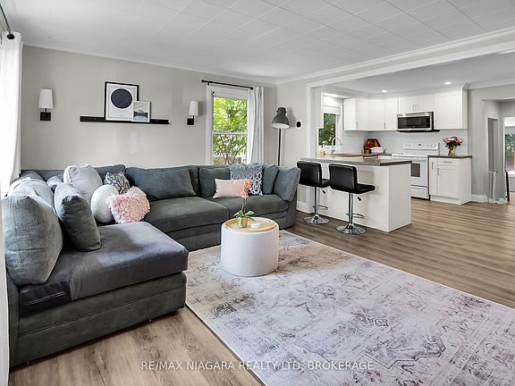 Welcome to this beautifully redone bungalow, perfectly nestled on a quiet street in the vibrant heart of Niagara Falls. Enjoy the convenience of being just moments away from parks, schools, highways, and an array of amenities catering to both professionals and tourists. Step inside to find a stunning main floor that has been tastefully refinished, featuring an open concept design that creates a warm and inviting atmosphere. The brand-new custom kitchen boasts modern finishes, complemented by elegant vinyl flooring that flows seamlessly throughout the space. The refreshed bathroom adds a touch of luxury, while two bedrooms provide the perfect retreat to a long day. The back mudroom leads you to a gorgeous private backyard, complete with a deck and a covered patio ideal for entertaining or simply relaxing in your own oasis. With just the right amount of green space, you'll enjoy low maintenance while still having a beautiful outdoor area to unwind. Complete with a large detached garage and driveway that fits at least 4 cars. Venture downstairs to discover a partially finished basement that offers incredible potential. Currently, it features a two-piece washroom with - full rough in for a shower, a spacious rec room, a laundry area, and an additional bedroom. Large, bright windows fill the space with natural light, and the separate access from the mudroom opens up possibilities for an in-law suite or accessory apartment. This charming home is perfect for young buyers seeking their next property or retirees looking to downsize without compromising on quality and comfort. Too many updates to list but some include owned hot water tank, furnace, and central air all from 2018, 100 amp breakers and roof shingles in 2015. Don`t miss your chance to make this delightful bungalow your own! Schedule a viewing today and experience the best of Niagara Falls living!