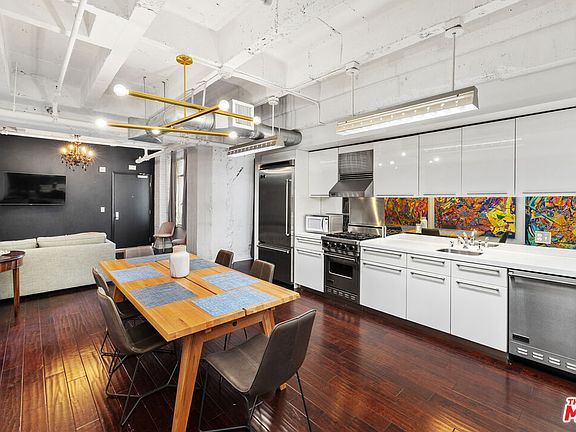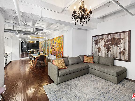 This furnished, one bedroom one bathroom loft-like condominium provides New York-style living in the heart of Hollywood. Located inside the historic Lofts at Hollywood & Vine building, the property offers an open concept living/dining space with a separate, large bedroom and en-suite bathroom. The large bathroom consists of a trough sink with double faucets, a large shower, and a separate lavatory. Large French windows look west toward Vine Street and offer a dazzling urban display of rooftops and lights on the Hollywood cityscape. The European style kitchen is furnished in high-end Viking appliances including a refrigerator/freezer, four-burner gas stove, oven, and dishwasher. The streamlined modern decor is enhanced by a sectional West Elm sofa that converts into a luxurious bed. Wise use of mirrors throughout creates the feeling of an exponentially larger space in this end unit that shares only one common wall. The building offers an extraordinary roof deck and community BBQ area with views of iconic landmarks across the skyline of Hollywood and Los Angeles and is staffed by a doorman 24 hours a day. Across the street from the Hollywood & Vine metro stop, adjacent to The Pantages Theatre, and a block from Trader Joes and Equinox, this home offers the excitement of Hollywood right outside the door.