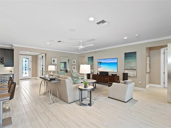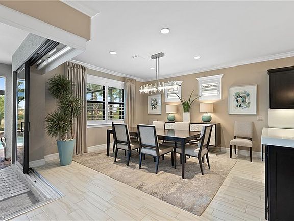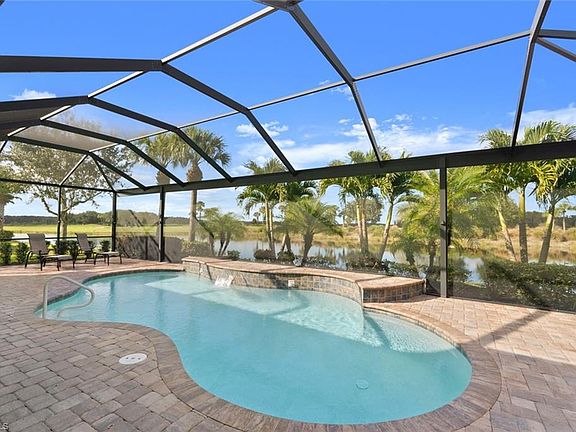 This home HAS IT ALL - GOLF MEMBERSHIP, BREATHTAKING WATER & GOLF COURSE VIEWS, and a LUXURIOUS SALTWATER HEATED POOL - all located within the 55+ Del Webb Naples community. Better than new construction and truly MODEL-HOME PERFECT, this upgraded PINNACLE floor plan (similar to the STELLAR) delivers the LUXURY LIFESTYLE today’s buyers desire. Step inside and immediately notice the exceptional finishes and meticulous care throughout. This 3-bedroom, 3-bath plus den residence features REMODELED KITCHEN AND BATHROOMS, PLANTATION SHUTTERS, electric roller shades, upgraded bedroom carpet, DESIGNER LIGHTING and ceiling fans, and fresh interior and exterior paint for a clean, modern feel. The PRIMARY SUITE is a luxurious retreat with a large walk-in shower, CUSTOM CLOSET, and dual sinks. The KITCHEN is a chef’s dream with quartz countertops, upgraded appliances, a new sink and faucet, a custom pantry, and a beverage center - perfect for effortless entertaining. Additional highlights include ZERO-CORNER SLIDERS, IMPACT GLASS WINDOWS, a new AC system (2020), new refrigerator (2024), new washing machine (2025), floor to ceiling tile in the bathrooms, and upgraded PLANK TILE. Enhanced LANDSCAPING WITH EXTERIOR LIGHTING elevates the home's curb appeal. The outdoor living space is pure Florida luxury - your screened-in saltwater pool with super screens and a PANORAMIC PICTURE-FRAME VIEW creates an unforgettable setting for relaxation or hosting guests. A Storm Smart ELECTRIC HURRICANE SCREEN adds both comfort and confidence. The oversized GARAGE - complete with a 4’ extension, epoxy floors, attic fan, insulated doors, and smart openers - offers impressive storage and functionality. In Del Webb Naples, you’ll enjoy WORLD-CLASS AMENITIES that rival luxury resorts: dine at the Rusty Putter Restaurant, soak in the RESORT-STYLE or LAP POOLS, break a sweat in the state-of-the-art FITNESS CENTER, and play your way through PICKLEBALL, TENNIS, bocce, billiards - even a top-tier GOLF SIMULATOR! Need groceries, church, or a bite to eat? Just hop in your golf cart and cruise into town - Publix and the heart of Ave Maria are just minutes away. This isn’t just a home - it’s a LIFESTYLE UPGRADE in one of Southwest Florida’s most vibrant 55+ communities. Don’t miss your chance to live where fun, fitness, and friendships flourish year-round!