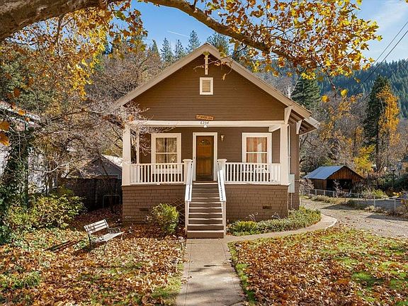 LOVING LIFE ON THE RIVER There’s something timeless about this 1918 riverfront home in historic Dunsmuir — where the Upper Sacramento River flows just beyond the backyard and the train passes out front, adding its familiar rhythm to each day. Just steps from downtown’s charming shops and local eateries, this home was built for mornings on the porch with coffee in hand and evenings spent listening to the river’s song. Inside, light-filled rooms shine through dual-pane windows, while the original front windows preserve the home’s vintage charm. Wood floors, built-ins, a metal roof, A/C, newer appliances, and a standby generator add comfort and ease. The soothing sound of the river drifts through the home and across the spacious upper balcony, perfect for al-fresco dining with water views. The covered front porch offers a cozy place to watch the world (and occasional train) roll by. The yard is partially fenced with a lush, inviting lawn ideal for gardening or summer games. Detached older garage and basement workshop/storage. Whether you’re coming home for good, seeking a weekend fishing retreat, or dreaming of sharing it as a riverside vacation haven, do check out this lovely home.