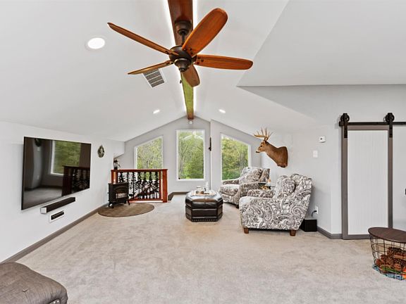 Really must see this home to appreciate it's beauty. Situated on almost 8 parklike private acres. This home boasts space for any outdoor activity. Two story addition created additional 435 sq. ft. living space above and a 2car oversized attached garage-2019. Attention to detail abounds. Also 1 car detached garage w/storage & electric. New Gutters/downspouts 2020. Amish shed w/deck and addtl. storage shed. Private shooting range backs up to creek nestled within the privacy of your acreage.