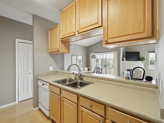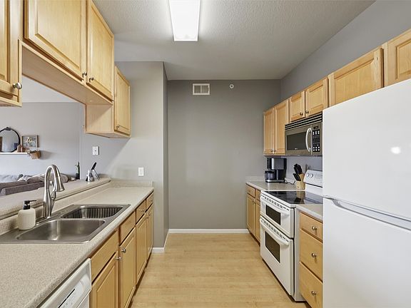 Better than new 3rd floor corner condo with amazing views! Completely updated with new LVP throughout the entry family room and dinette. Laminate hardwood floor in the kitchen and new carpet in the bedrooms. Open kitchen features huge island with tons of seating and corner pantry. Vaulted family room boasts corner gas fireplace and leads to spacious dinette with newer light fixture and sliders that lead to private deck to with views of amazing sunsets and the pool! Master bedroom includes attached ensuite with oversized vanity and full tub. Second bedroom is spacious as well, plus full hall bath, convenient, dedicated laundry room with full size washer and dryer that are included. This is the best location in the building with southwest exposure and corner privacy! Don’t miss the elevator access and oversized garage! All information obtained from seller and public records.