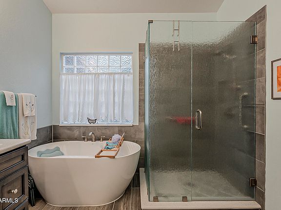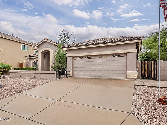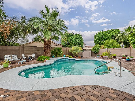 Beautiful Mesa home featuring a sparkling pebble-tec pool with a soothing water fountain and color-changing lights! Enjoy outdoor living under the covered patio with an electric retractable canopy and misters, perfect for Arizona summers. Inside, you'll find an open floor plan, Corian island bar, gas fireplace, and a large formal living/game room with vaulted ceilings. The interior has been freshly painted, and the spacious master suite includes a soaking tub, separate shower, and large walk-in closet. The guest bath features a beautiful updated shower, and the yard offers mature fruit trees. Conveniently located near the 202 freeway, shopping, dining, and hiking — this home is move-in ready and built for entertaining!