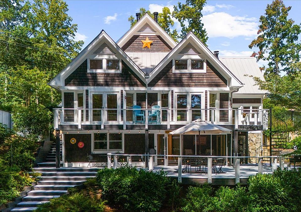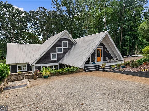 Who wants to live on the south-end of the lake that is about as close to Atlanta as you can get? Have you been searching for 'the perfect' lake home that you would LOVE everytime you walk in the front door and would be proud to entertain family and guests? This isn't just a home, it is a super-unique, fully renovated sanctuary that blends rustic charm with modern luxury, year round views of the lake and an easy walk to the dock. With over $250,000 in renovations in the past 3 years, the sellers have lovingly updated and maintained the entire home, from top to bottom. From the moment you arrive, you'll be amazed by the beautiful character of the wood shingle exterior and the elegant presence of the metal roof. Once inside, the heart pine flooring, custom built-ins, mantles and trim, designed from reclaimed barnwood, beamed ceilings and 3 cozy fireplaces makes this the perfect home to enjoy all 4 seasons. The gourmet kitchen is a chef's dream with high end appliances and an eat-in area that opens directly onto the deck. There is a charming wet bar/coffee bar with an additional full refrigerator that ensures you will always be ready to entertain, whether you are serving morning brews or evening cocktails. The main level primary suite is like a private oasis, complete with a fireplace, a spa-like bath and huge, custom closet will make you feel like you're in a high-end boutique. This impressive multi-level home has a gorgeous suite on the upper level and an equally impressive suite on the lower level. The lower level flex room is perfect for a bunk room, exercise room or a 2nd home office. Do you work from home? The bright, large office on the main level is the perfect area to get a bit of work done before heading out on the lake, and overlooks the koi pond. The open dining room blends with the great room and makes this a great area for conversation and entertaining. Step outside to the massive deck to enjoy the great outdoors or head down to the newly built screened porch on the lower level. There are so many interesting areas to spend time with a group or get away from it all in a quieter area of the home. The massive, cleared side lot is a highly sought-after bonus, offering a blank canvas for a future 2 car garage, home expansion or simply providing ample parking for a boat, trailer or RV. Stroll down to the lake, with beautiful water and new riprap at the shoreline for erosion control, to your dock with a party deck and boat lift. Take off in your boat to explore the marinas with lakeside dining or having a blast at Margaritaville at Lake Lanier Islands, all just a short boat ride away. This more than just a home, it's an invitation to a life of fun, luxury and serenity on Lake Lanier!