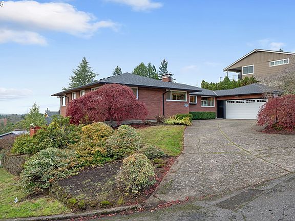 MCM Daylight Ranch with views galore. Period details with modern updates make this home shine. 3,622sf of living space featuring 4 beds and 3.5 baths set in the Vermont Hills close to Gabriel Park. A wall of windows in the living room lets you take in the endless territorial views, especially the sunsets. The gas fireplace with brick facade has a beautiful wrap-around marble hearth. The generously sized dining room opens to the covered patio for year-round entertaining. The well-appointed kitchen features all appliances and extensive cabinets for storage plus a powder room. The entire main level has hard wood floors. The Primary bedroom has built-ins and dual closets with en-suite bath with tiled walk-in shower. There are 2 additional bedrooms on the main, each with built-ins, served by a full bath with dual sinks and a tub/shower combo. The downstairs great room is generously sized for a game of pool or movie night, and the bar area with built-in fridge will be the perfect spot to enjoy company when they come in from the pool. An additional bedroom with office, workout/bonus room, and a large laundry room with a full bath split into a half-bath and separate shower finish the lower level. Outside enjoy the landscaped, terraced yard, large crystal-blue pool, and patios. The possibilities are endless like the views. Welcome home! [Home Energy Score = 2. HES Report at https://rpt.greenbuildingregistry.com/hes/OR10153036]