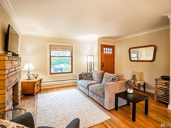 You will love all the energizing urban walks steps from this craftsman home filled with natural light. Pick up a treat & drink at Herkimer coffee & head over to enjoy a loop around Green Lake, then walk home through Woodland Park. Once you are ready to relax, take in views of the Olympic mountains from your deck or a cozy fire in the charming living room w/ wood FP. This home has rich hardwood floors, 9ft coved ceilings, updated windows, kitchen w/ mahogany cabinets, granite counters & SS appliances. The rec room & storage possibilities in the basement give you space to spread out. You will delight in the opportunities to garden & savor life outside in this priceless location. Fully fenced backyard gives you space to play & soak up the sun.