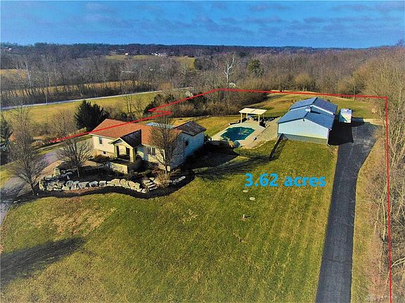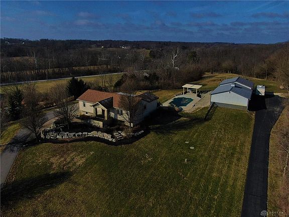 Incredible property perched on top of a hill w/ views and sounds and sights of nature all around. Built in 2002 this tastefully built home was made w/ an airy open concept with an abundance of natural light. Kitchen comes w/ with country french ivory cabinetry accented w/black Onyx Granite tops, SS appliances, slate tile flooring with space for meals and entertainment. 13x11 walk in pantry area w/ built in cabinets, perfect for a cook! Kitchen has a double door that walks out on the covered deck, over looking nature, hills, the the in-ground pool. Split bedroom floor plan with en-master suite that walk out to the second story deck (rot free). Walk in closet, jetted tub, large walk in shower and double vanity. Spiral stair case blends the home so well. The full basement has a family room that has a full bath in the hall as well as 2 bedrooms, of which 1 has a double door that walks you to patio. 24*30 section of barn = game room w kitchen w granite top and 1/2 ba, 30*40 heated garage.