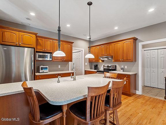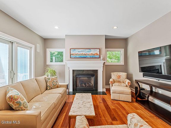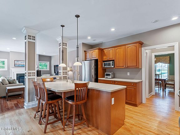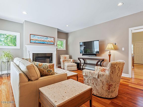 Custom Guilderland home w/ inlaw suite & 3,930 SQFT. 4 bdrms, 3.5 baths+ loft, office, & finished basement. Grand 2 story entry, updated chef's kitchen, Corian counters, under mount dual sinks, stainless appliances, vented hood, cherry cabinets, & pantry. Formal dining rm, spacious living rm w/ mahogany floors, gas fireplace, surround sound. 4-season 13x13 ft heated Adirondack room. Mudroom, office, & 1st fl bedrm w/ full bath. 2nd fl large primary suite & tiled 4 x 8 ft walk-in shower w/ glass blocks, skylights, speakers, & walk in closet. 2 bdrms, large bathrm + 2nd fl loft (for office / guests). Bsmt w/ 9 ft ceilings, incl kitchenette, large family rm & storage. Backyard oasis w/ stone patio, firepit, composite deck. Whole house generator, cat5 wired, FiOS, heated garage w/ epoxy fl.