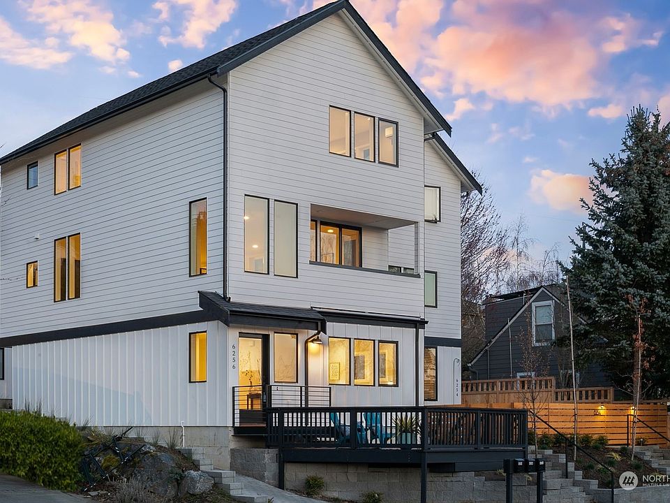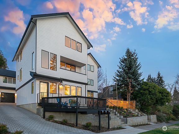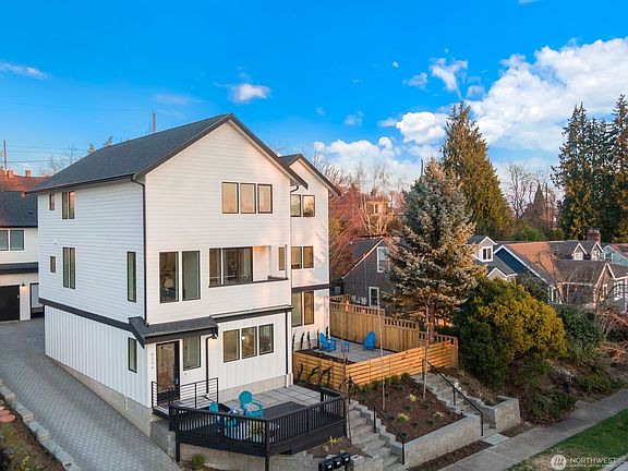 Nestled on a quiet residential street & positioned to take advantage of city & sunset views. Great room concept flows seamlessly throughout w/clean lines & stylish finishes.Quality design & build.Soaring ceilings & celestial windows drench this home in natural daylight.This 4 bed, 3.5 bath is sure to impress.Gourmet kitchen w/expansive counters & open living area w/private balcony.Primary bedrm w/city views & en-suite bath w/large shower & double vanity.Main flr bedrm w/en-suite makes this floor plan versatile.Upper level has bedrm/den & 3rd bedrm w/en-suite bath.AC mini-split & util. Easy access to Burke Gilman, Children's Hospital, University Village, UW, Met Market & a short distance to swanky wine bars & restaurants. Air B+B potential.