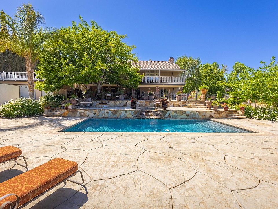 Retreat to this Spacious 3.2-acre Custom Horse Property- Surrounded by Hundreds of Trees, Nestled behind Private Security Gates, 900 linear feet of plastered block wall around the peremiter of the home, with 3 Separate Buildings and Incredible Views! With A Helipad on the Property, you may Never Leave by Car! Exclusive Main House features Large bedrooms, Upgraded bathrooms, 2 large bonus rooms (home gym, office, playroom), and two 2-car garages. Custom built with exquisite Grand Staircase, Ornate Moldings, Custom Built-ins, and so much more. Upstairs Bedrooms open onto a Gorgeous 40-foot Covered Deck with Magnificent Views of the Valley. Master Bath features a Jacuzzi Tub, Fireplace, and Steam. A second 2,000 sq. ft. building can be used for an Office, Workshop, or Converted to ''Mother-in-Law'' Quarters with its own Attached 2-car garage. Plus, another Separate 2-car garage on the Property! Additional Features include an Outdoor Space for Relaxation and Entertaining with a cascading patio to the Pool, and Spa, an Outdoor Barbeque area with Granite Countertops, 3,000 sq. ft. of Solar including Tesla Backup Batteries, Well Water for Irrigation and Emergency use, a new 300-foot driveway, and 33,000 sq ft of flatwork concrete throughout the sprawling acreage. Come and Live your Life by Design in this Private and Secure Estate, Recently Updated with Plenty of Room to Expand!