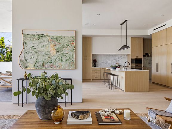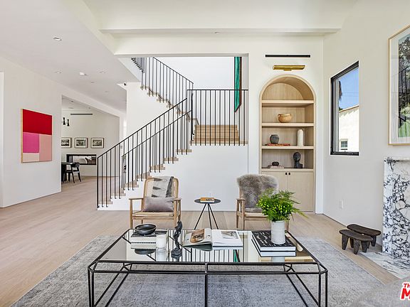 Designed & built by acclaimed development firm MODE, this tranquil modern-minimalistic home is situated amongst lush greens on one of the best streets in Beverly Grove. A rare offering with an eclectic architectural design including Limestone exterior tiling, European white oak floors, Fleetwood sliding doors, as well as, custom millwork and designer stonework throughout. As a MODE signature, the goal is to provide a timeless statement and creative retreat - offering an open floor plan, while maintaining formal division amongst the entertainment spaces. Boasting 5 luxuriously-appointed bedrooms, including a master suite w/ walk-in closet and oak-cladded vaulted ceilings, along with 5 bathrooms, 5 fireplaces, chef's kitchen w/ walk-in pantry & Sub-Zero Wolf appliances, formal dining / living room, detached ADU, outdoor BBQ bar and heated pool / spa. A full home automation system including cameras, speakers on Control4 installed. An immaculate gem awaits!