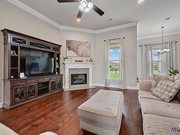 This meticulously well maintained home is a buyer's dream, with 3 bedrooms and 2 baths, this home with an open/split floorplan is nestled on a beautiful lake lot in the highly sought after Pelican Crossing community in Gonzales. You will definitely appreciate the curb appeal of this home with its inviting front entryway. As you enter the front door into the spacious living room, you are greeted with high ceilings, the space opening to the the kitchen and breakfast area that all overlooks beautiful lake views. All of this space along with a formal dining room makes this home great for family and entertaining guests. The kitchen features great cabinetry, granite countertops, upgraded stainless appliances include: gas range with microwave hood vent & dishwasher, plus a large pantry. The island offers extra seating at the bar. The master suite is extremely spacious and boasts a private en-suite bath featuring dual vanity, tile surround above the garden tub, separate shower, water closet & two walk-in closets. The two additional bedrooms have great closet space & shared hall bath. Other amenities include: enclosed 2 car garage, covered patio area, aluminum fenced-in yard overlooking the lake, and gas tankless water heater. This community is outstanding and offers amazing amenities including a community pool and lake access. This home is located in Flood Zone X. Call for your private showing today!