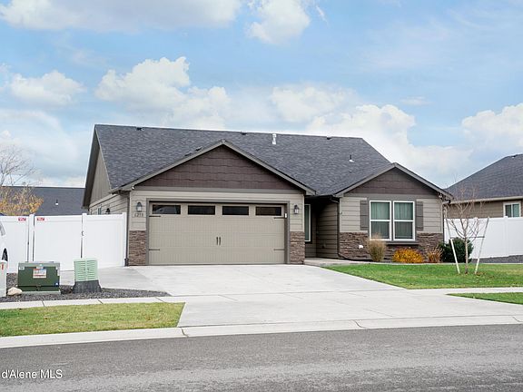 Open floor plan and split bedroom design this home features granite and stainless steel appliances and is beautifully landscaped with curbing and low maintenance. The hot tub sets the ambiance in the back plus a large covered outdoor living area which is great for entertaining! His and her closets and dual vanity in the primary suite, this floor plan is very functional. Come see it before it's gone!