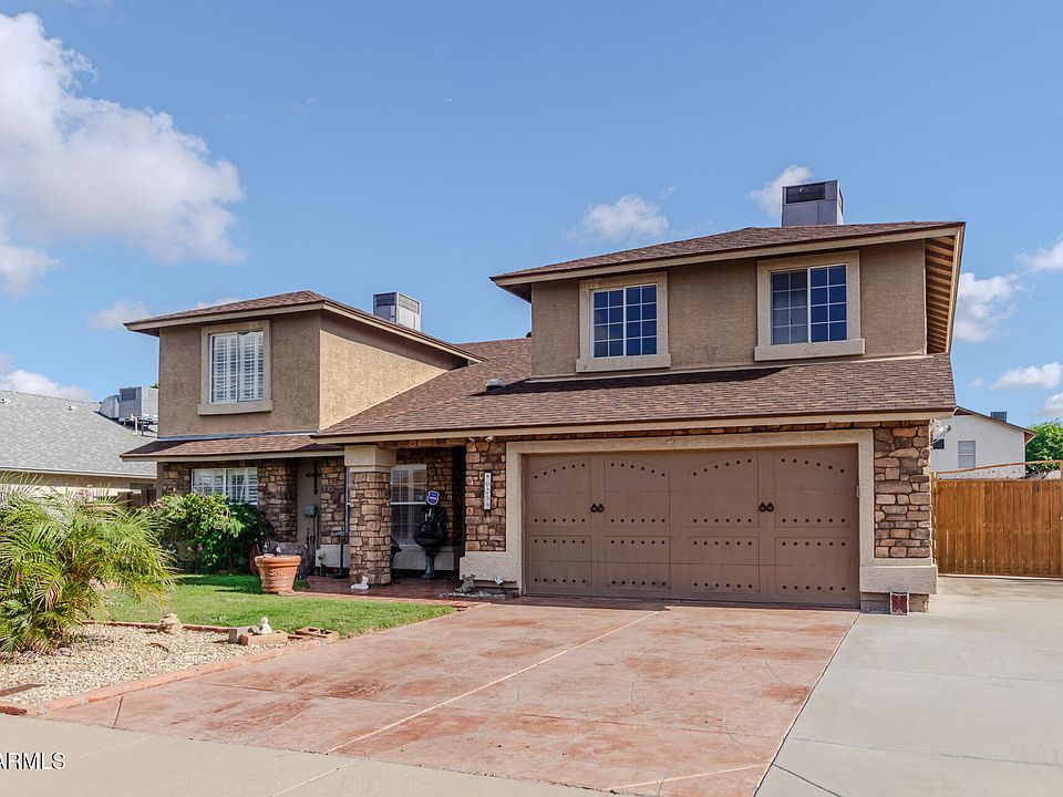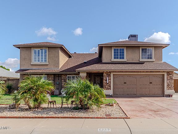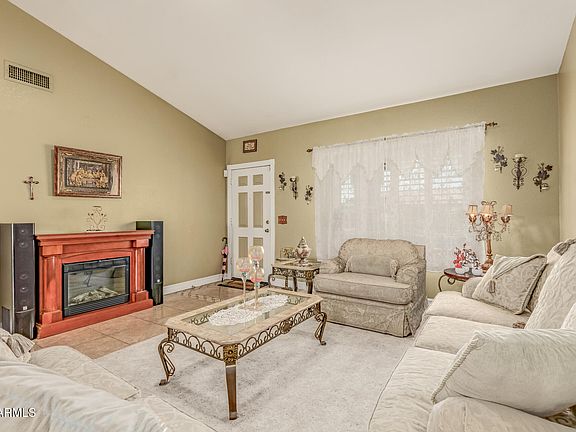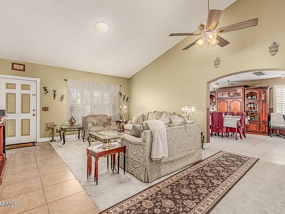 Spacious, rare property is walking distance to State Farm Stadium and perfect for entertaining! Permitted addition makes it the largest home in the neighborhood. No HOA! RV Gate & plenty of paved parking area. 2.5 baths and 4 bedrooms plus unexpected bonus room that could be a den, playroom, or office! Primary bedroom is HUGE with lots of extra room & tons of closet space. Eat-in-Kitchen is comfortable with a large island, plenty of storage, large pantry & newer appliances. Formal Dining room has decorative features that make the space truly one-of-a-kind. Backyard has everything you could wish for: huge shed for projects, built-in barbecue, extended covered patio, garden area & fenced pool area! Your guests will love the pool's large baja step, seating and colored lights & water feature.